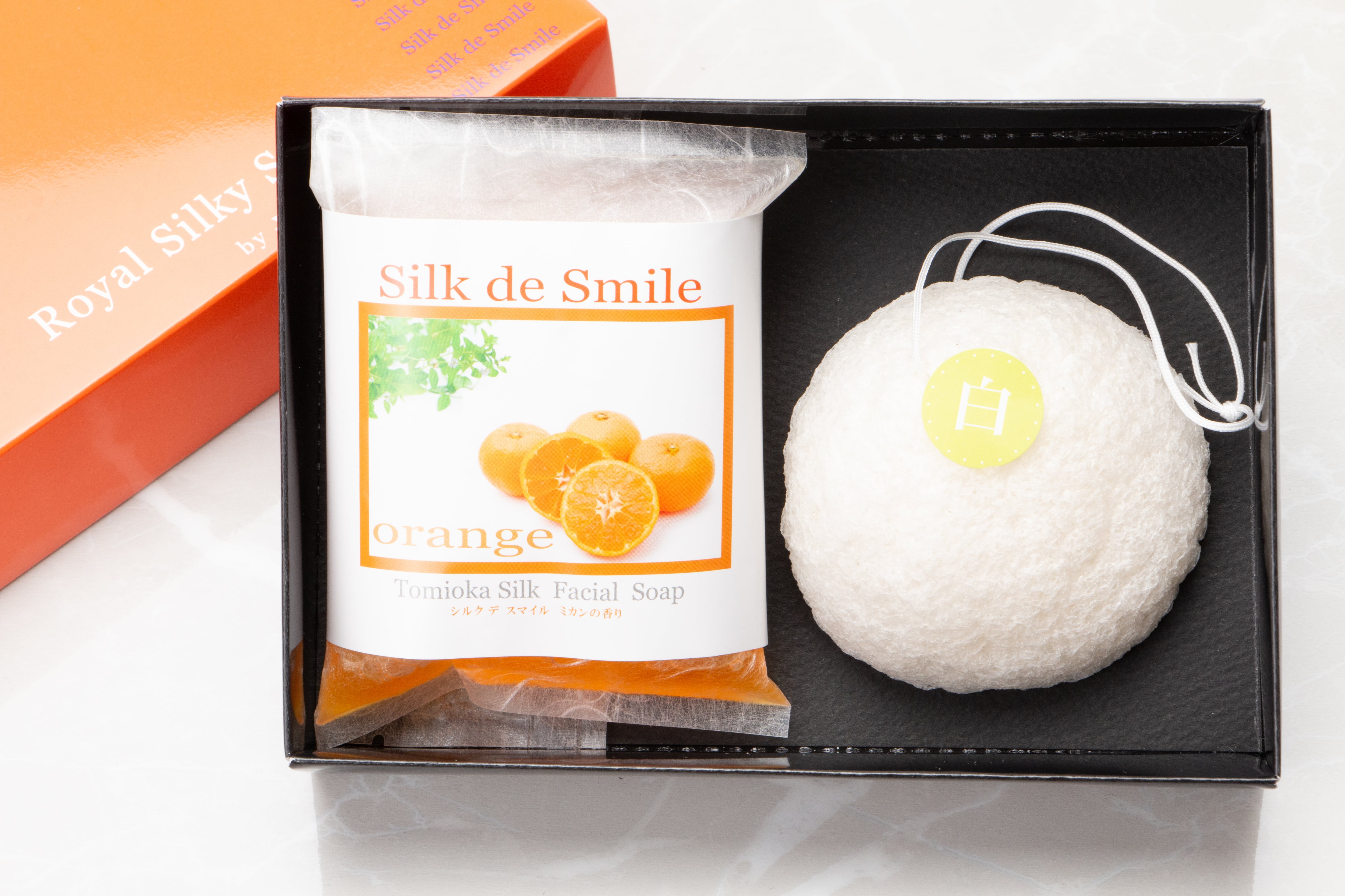 シルク デ スマイル オレンジ石鹸&蒟蒻パフセット(箱入り)
