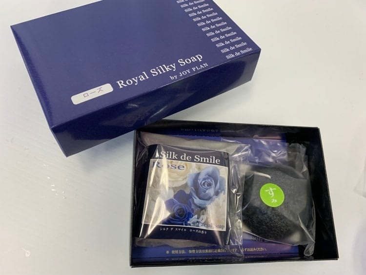 シルク デ スマイル ローズ石鹸&最高級備長炭配合の蒟蒻パフセット(箱入り)
